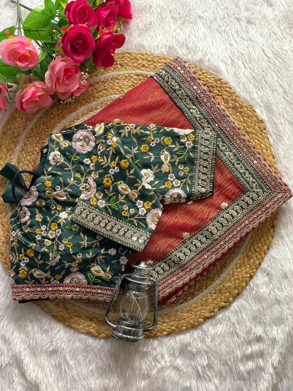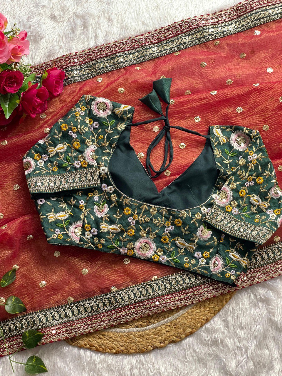- Blouse Fabric: Matching Soft Crush Fabric