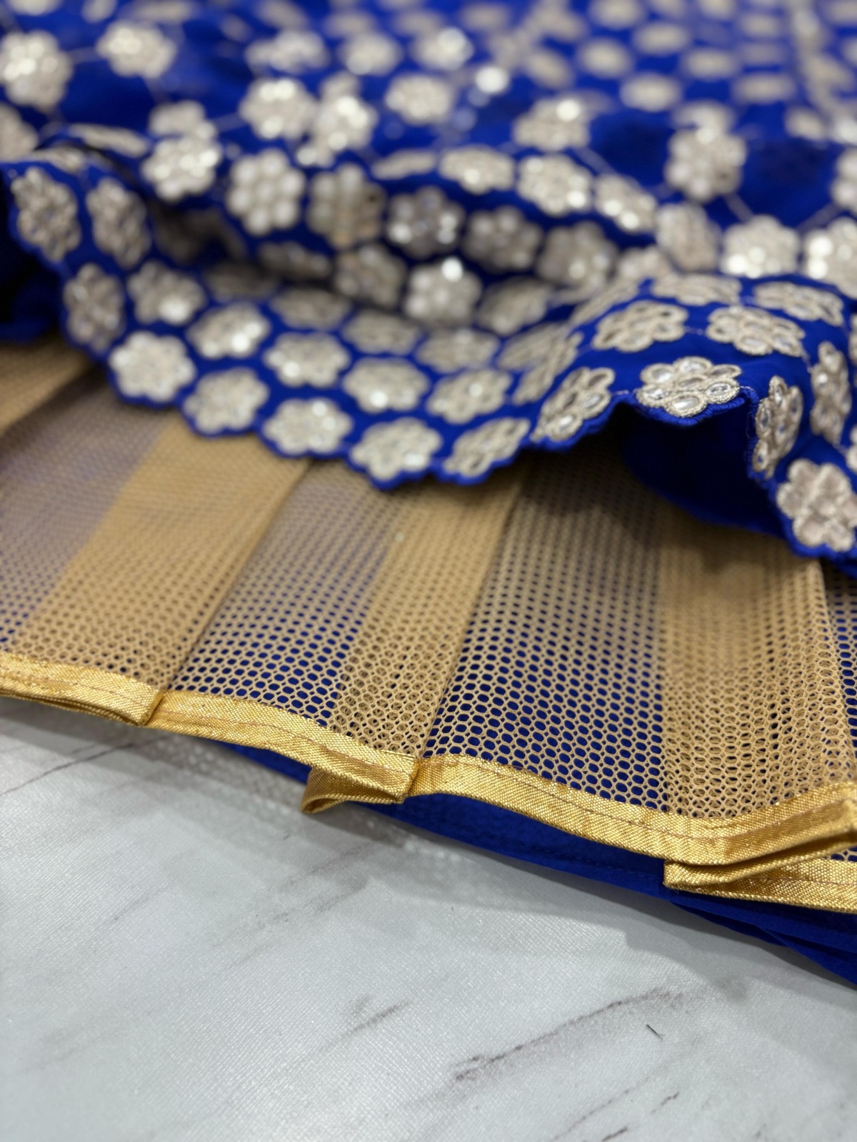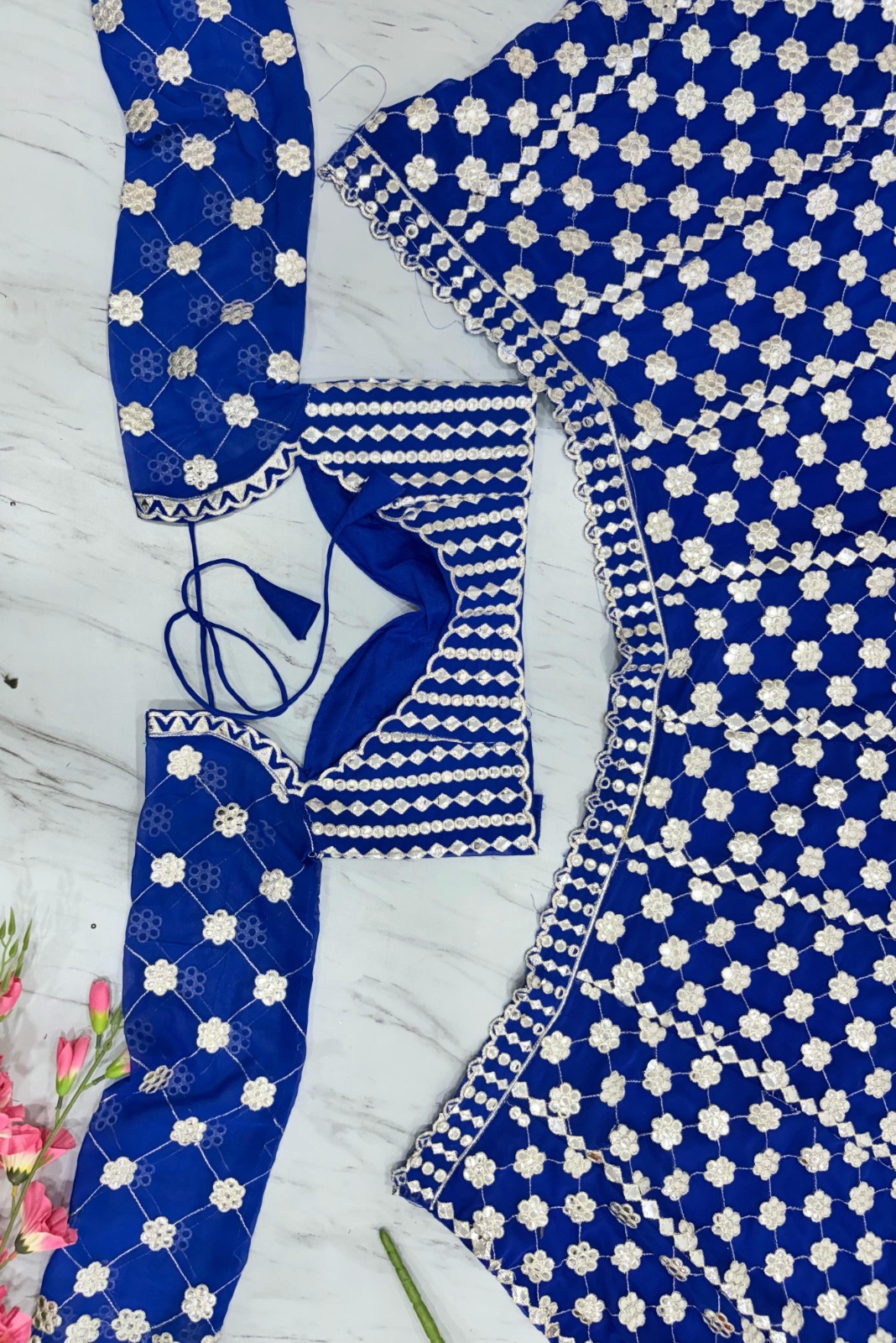 Blouse: Premium Georgette | Embroidery, Coding & Mirror Work (Front & Back, Full Sleeves) | Unstitched