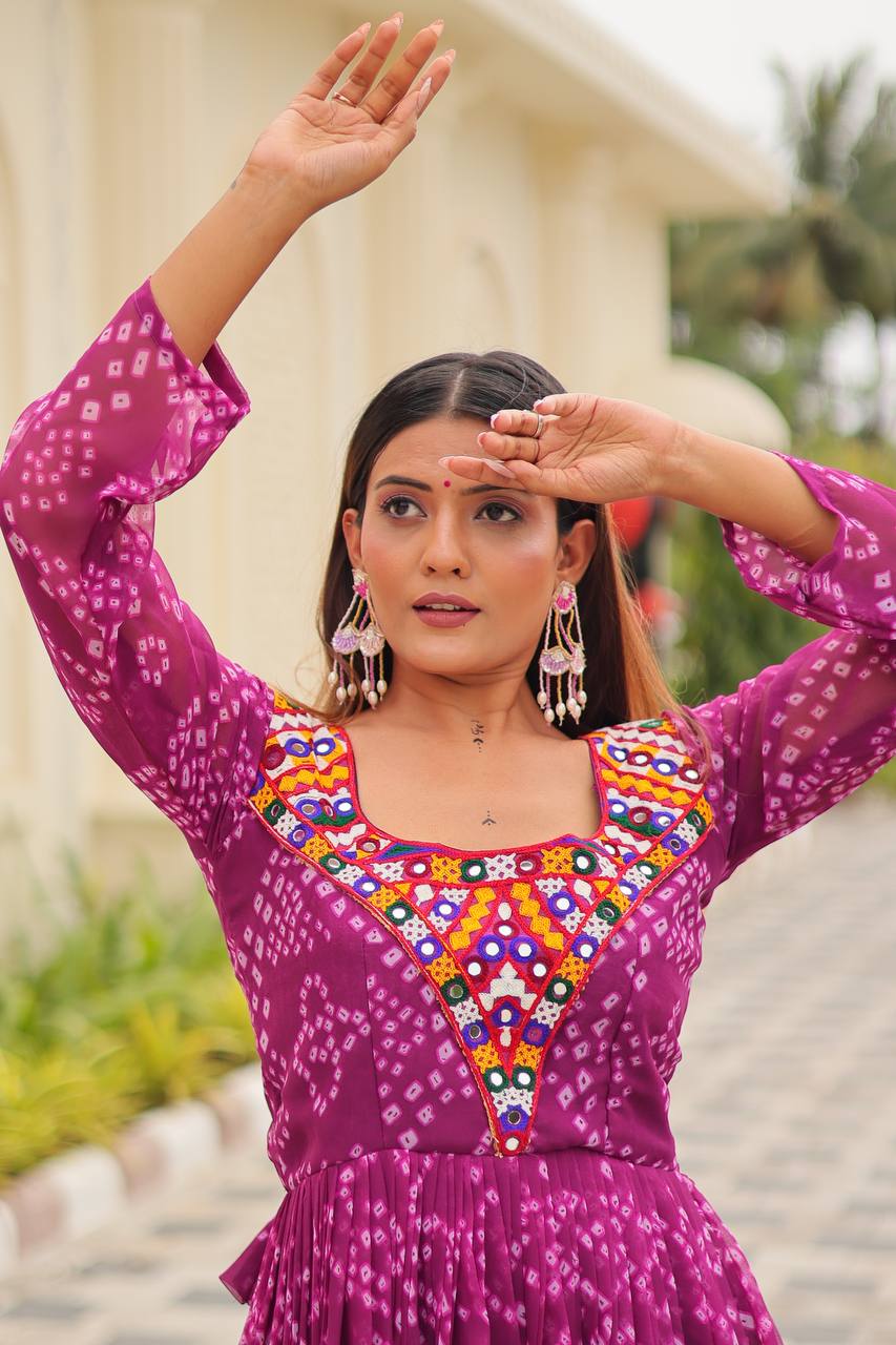 Navratri Special Gamathi Work Gown with 9 Meter Flair