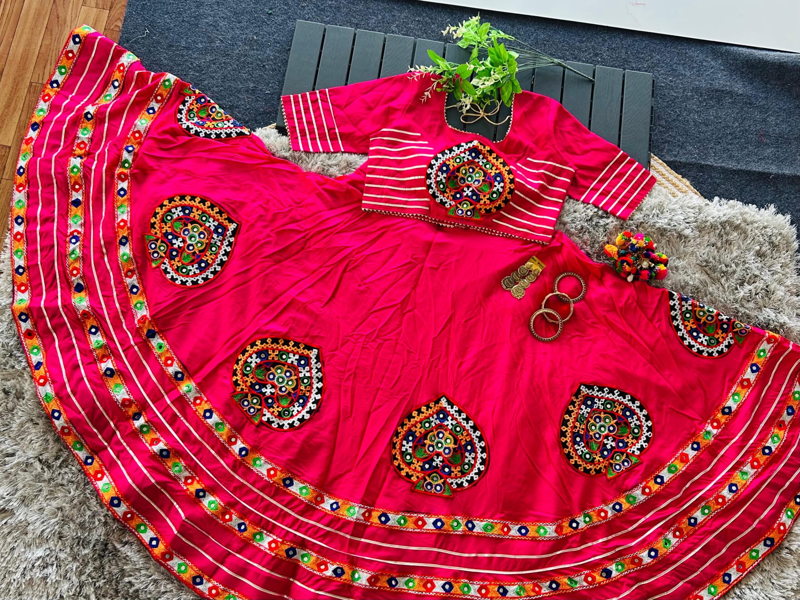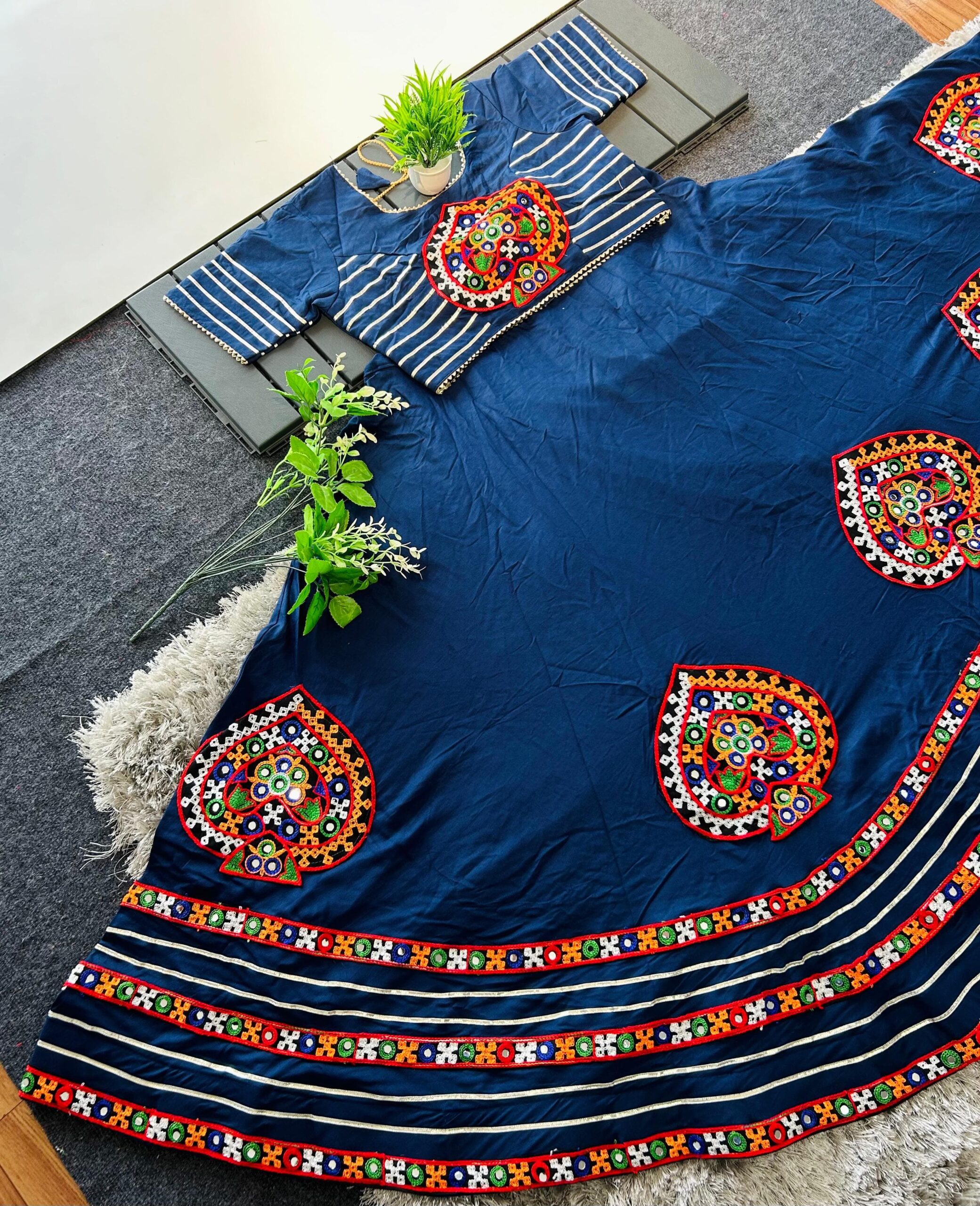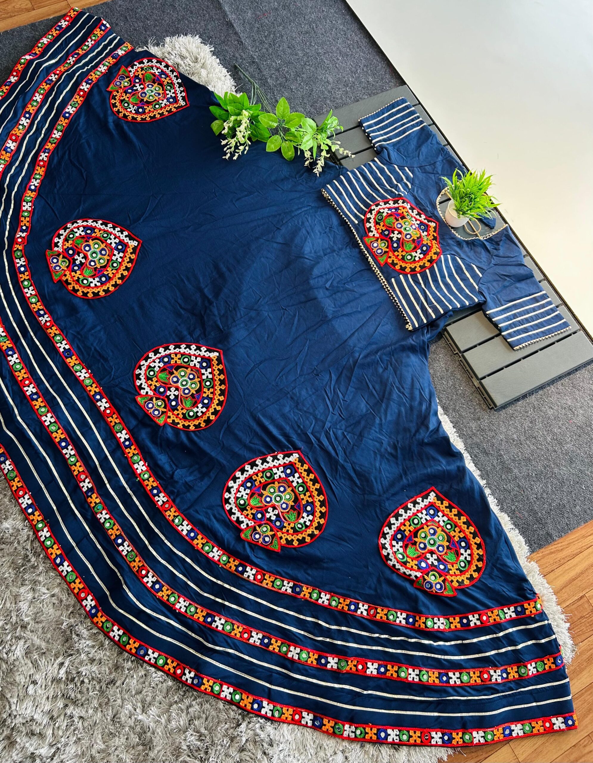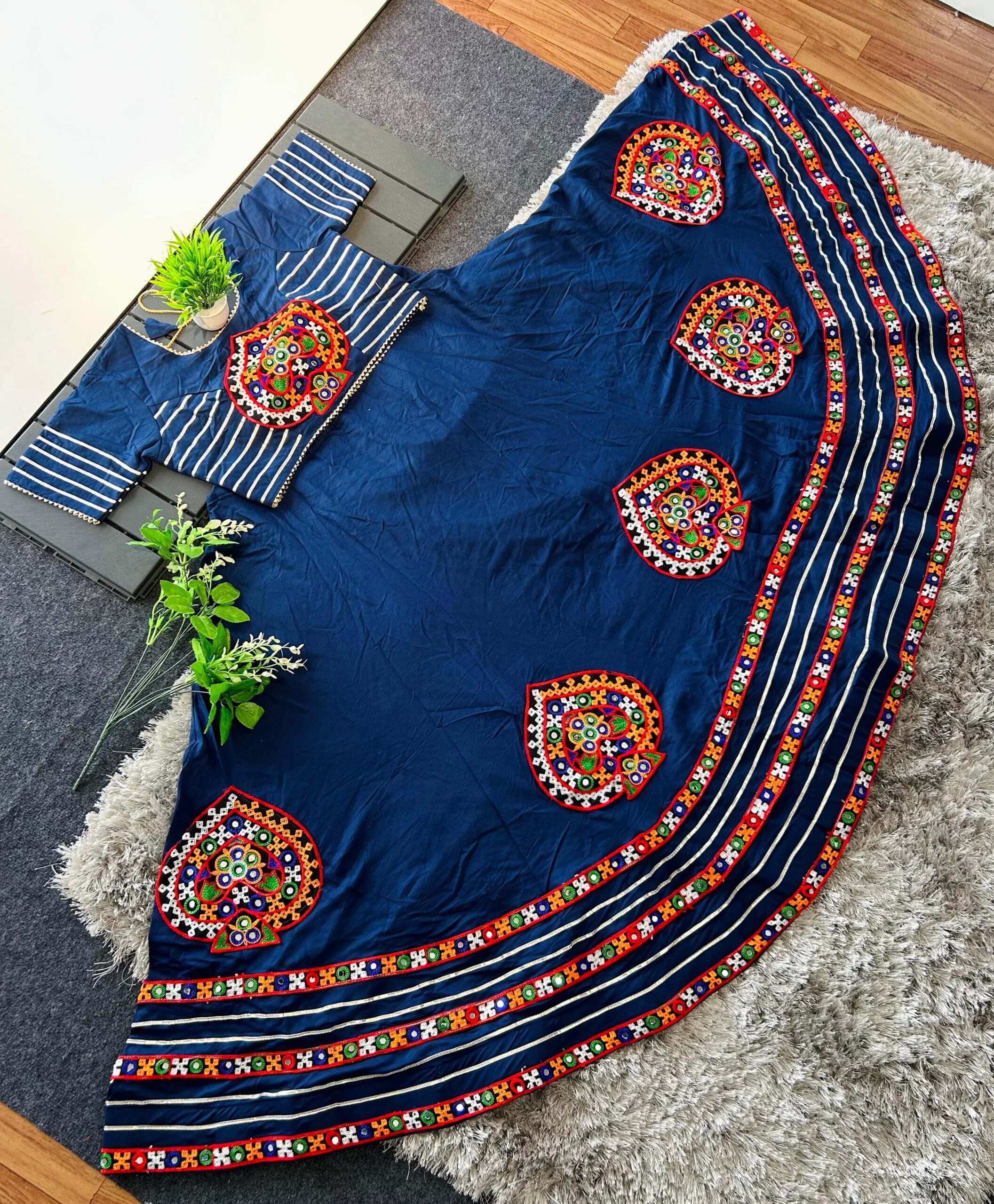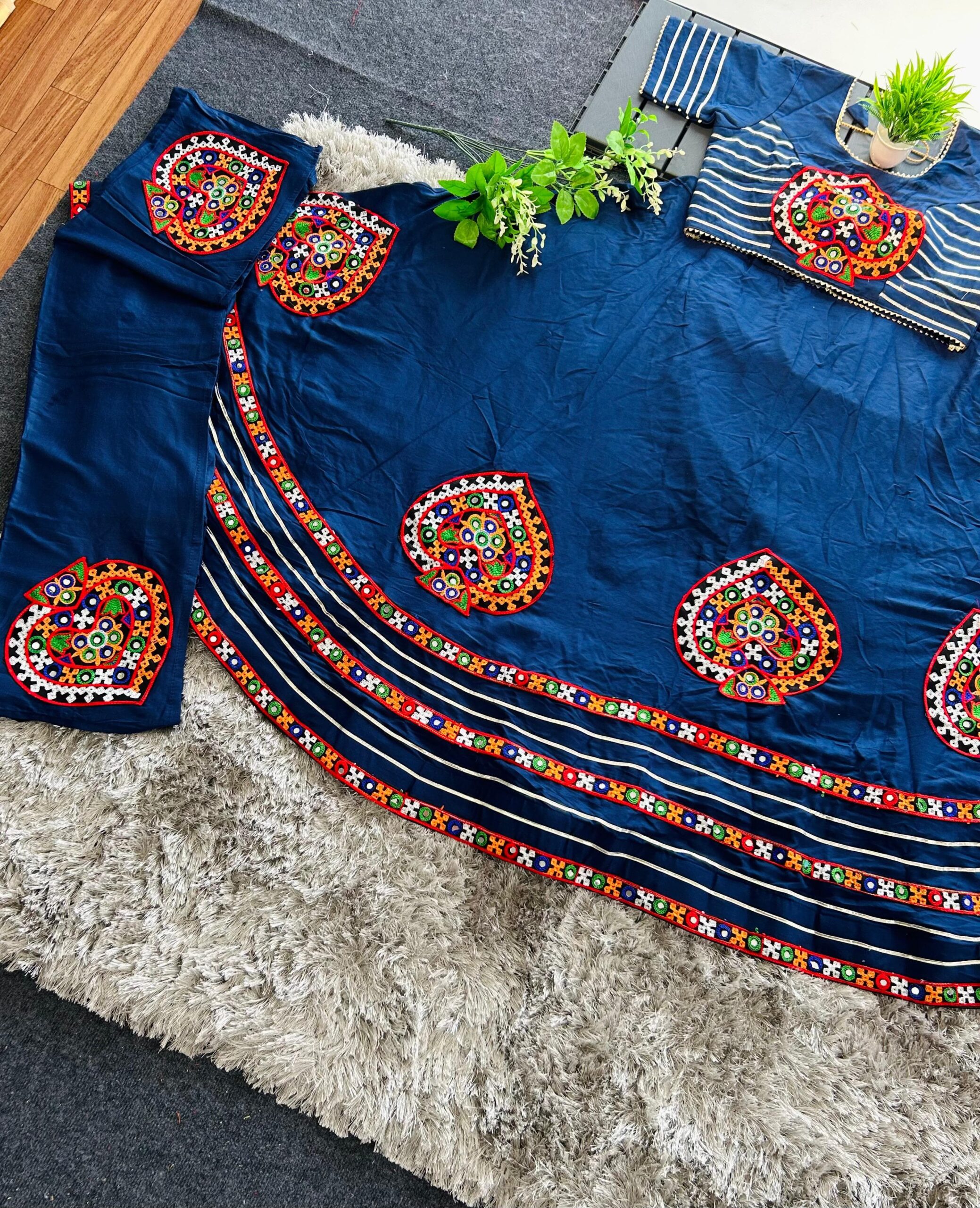 Navratri Special Lehenga Choli Set with Gamthi & Real Mirror Work
