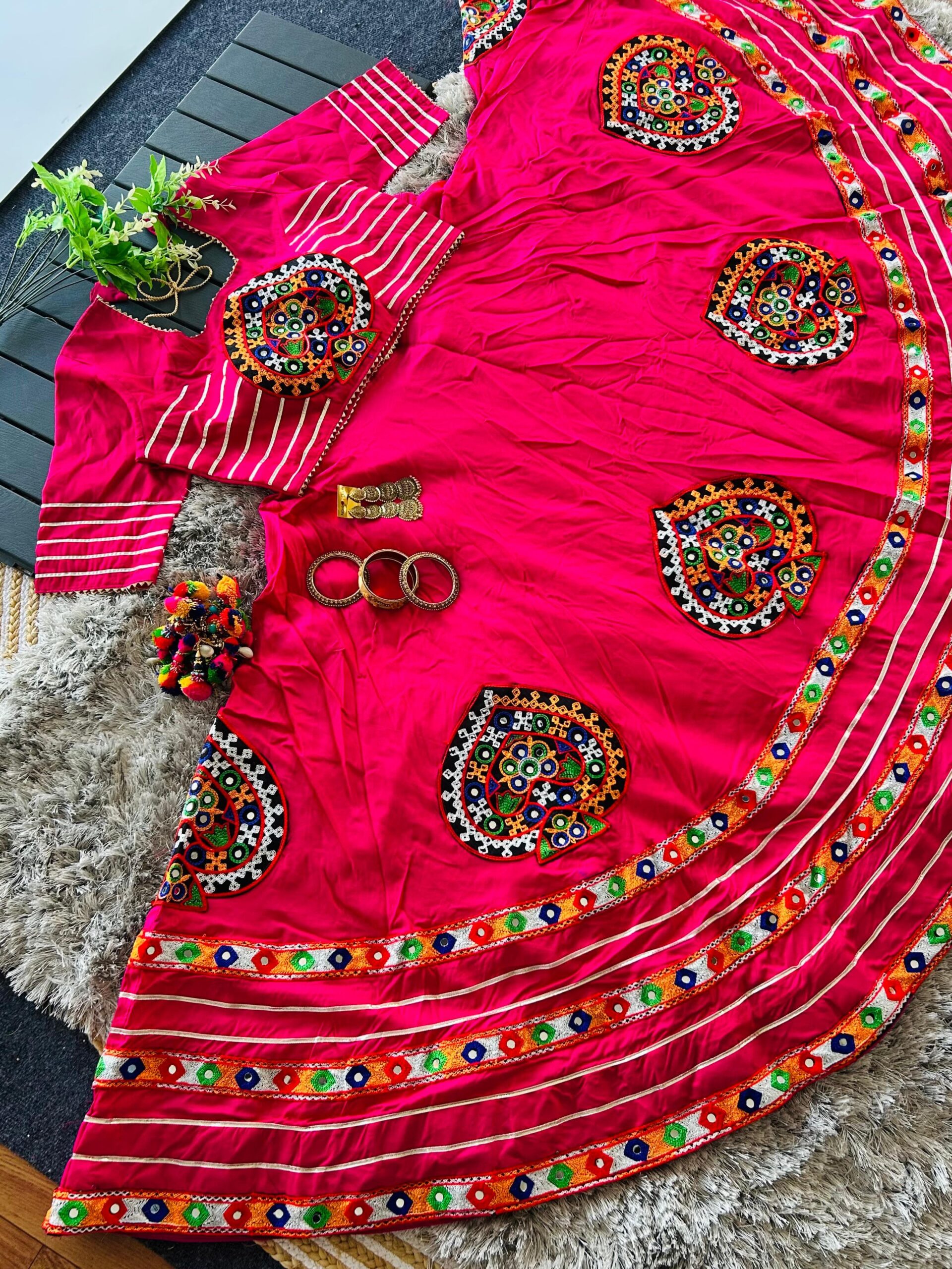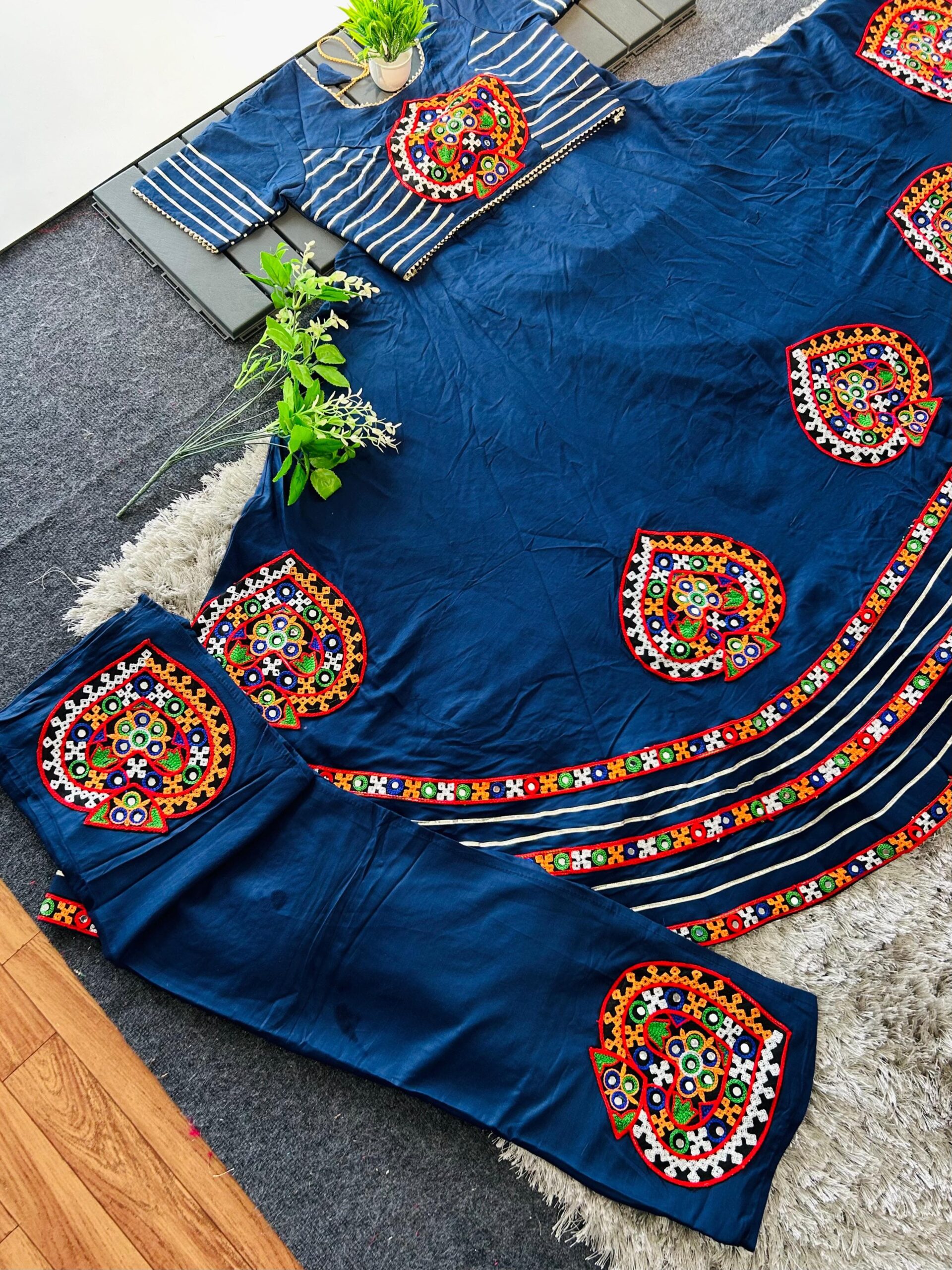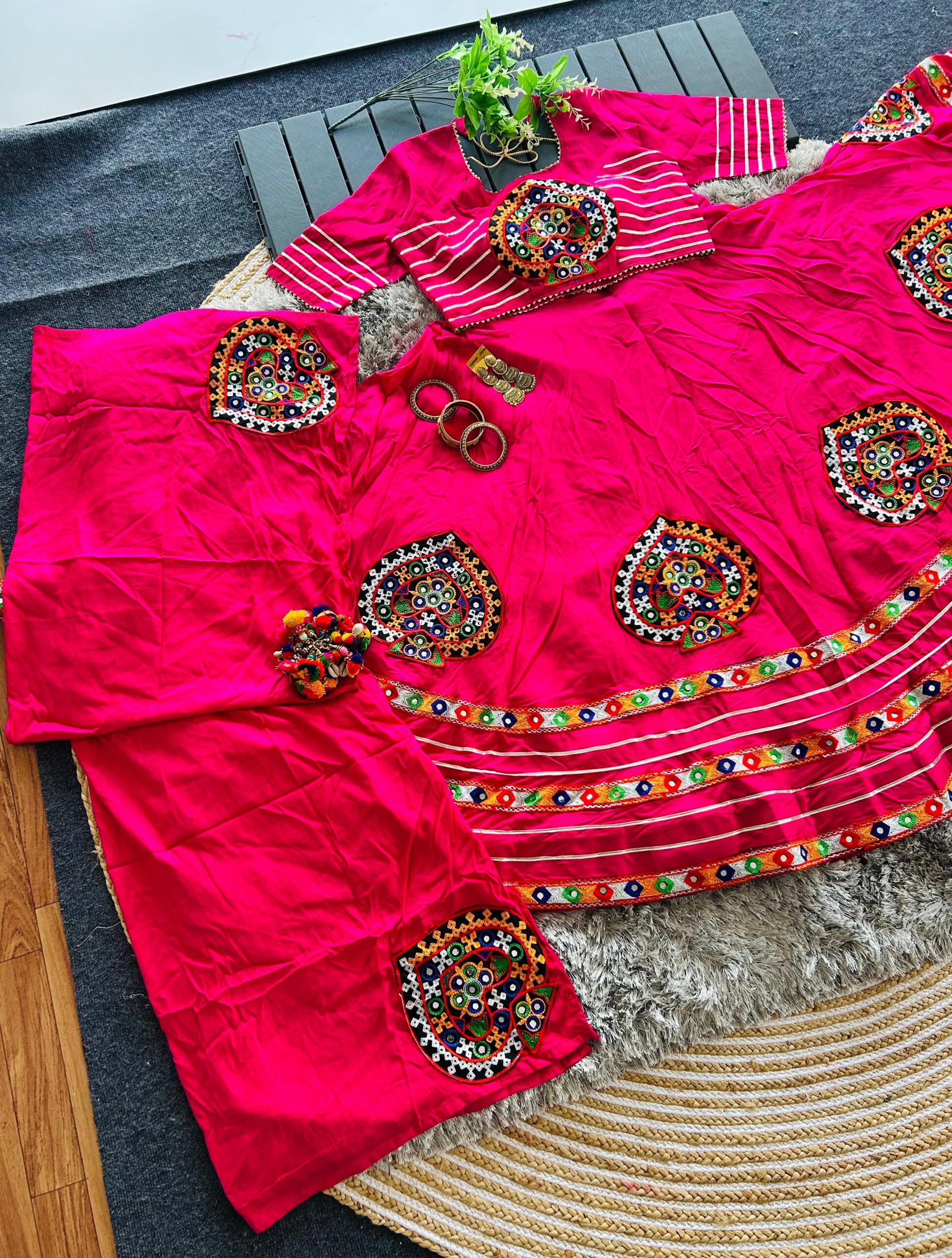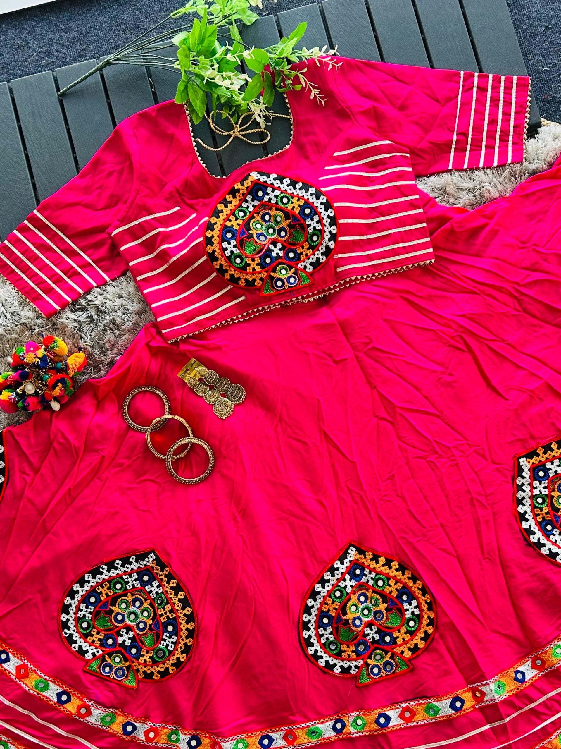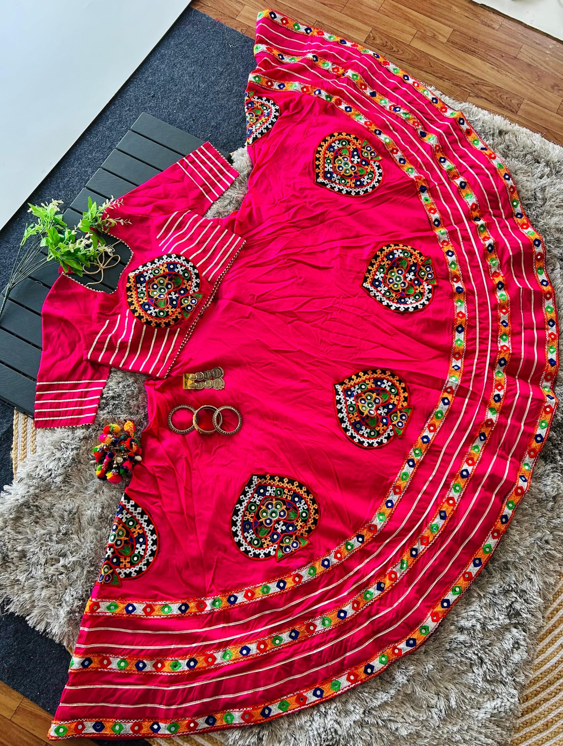 Navratri Special Lehenga Choli Set with Gamthi & Real Mirror Work