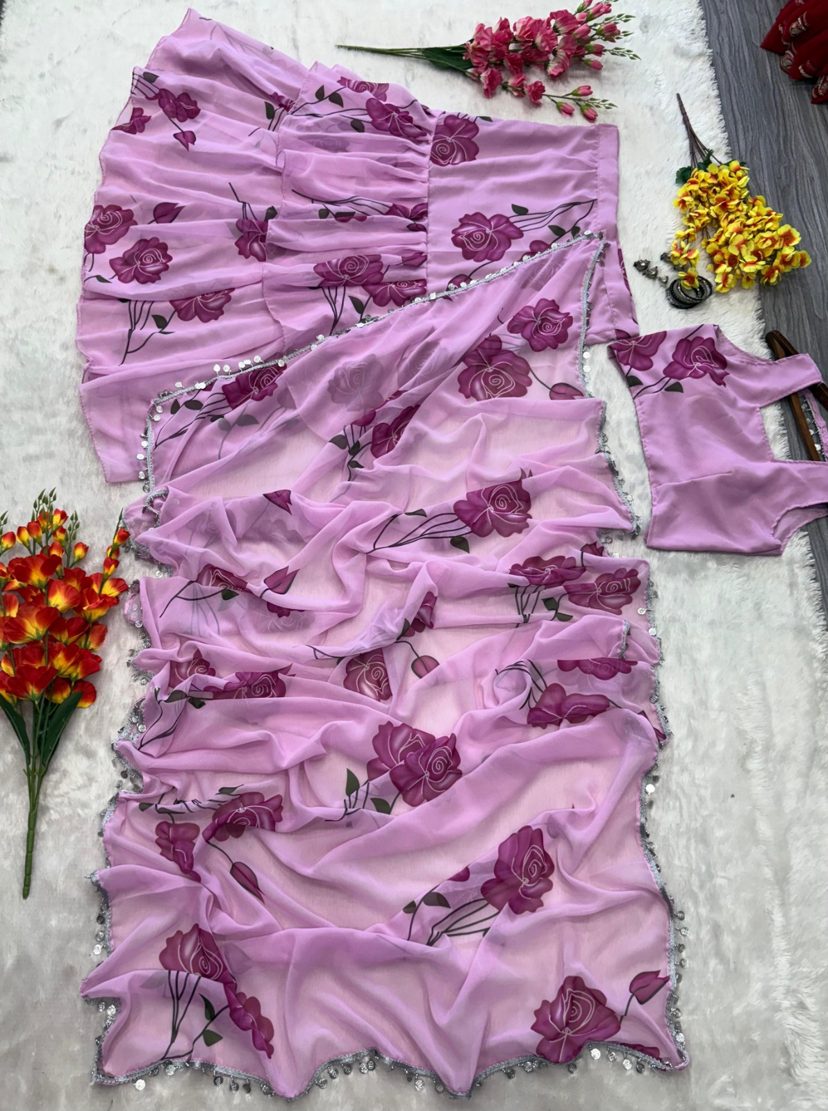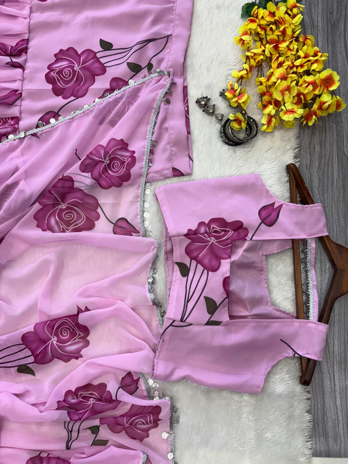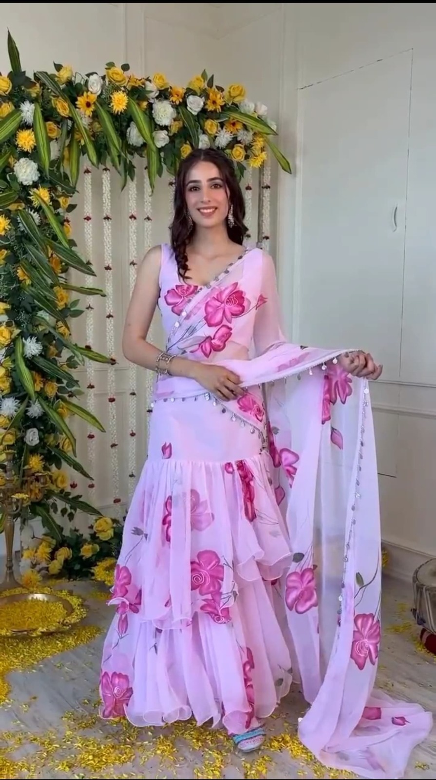 Introducing our most beautiful ruffle lehenga saree collection, crafted in premium georgette with digital print.