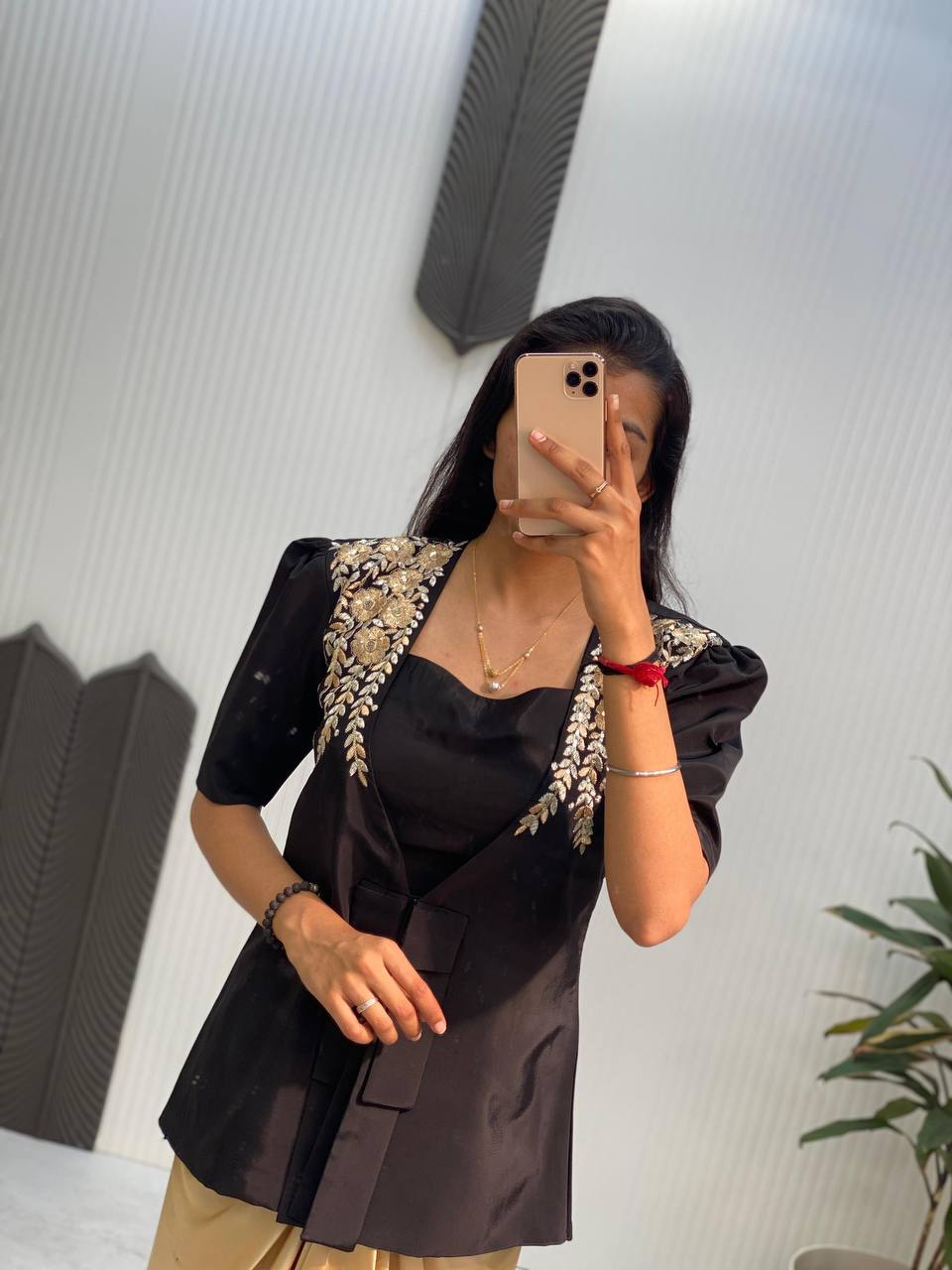 # BLAZER : FRENCH CRAPE WITH SEQUENCE EMBROIDERY (FREE SIZE)